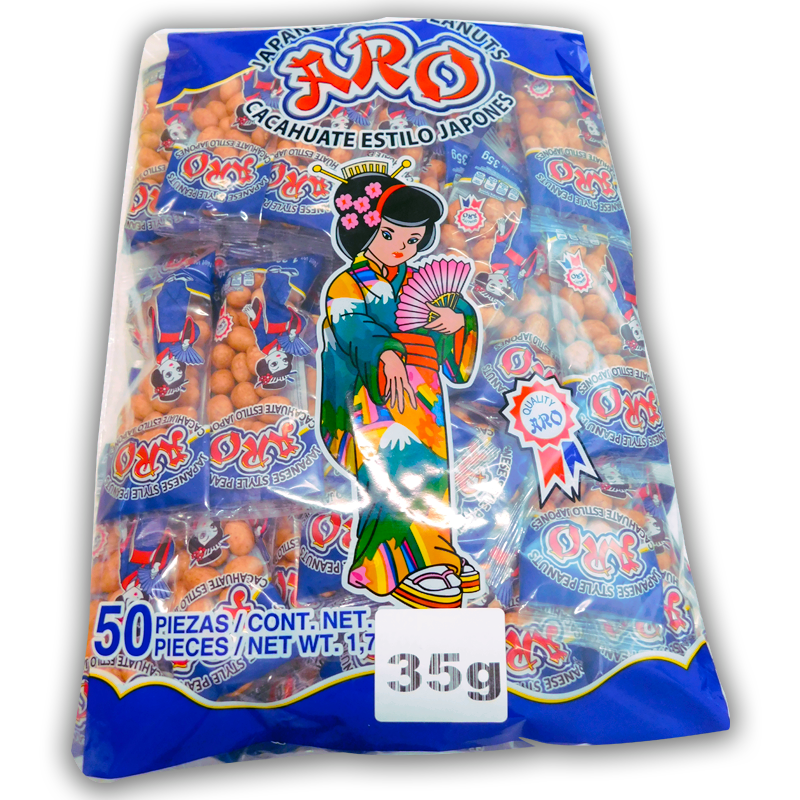 ARO cacahuate estilo Japones, paquete con 50 bolsas de cachuate ARO estilo Japones.